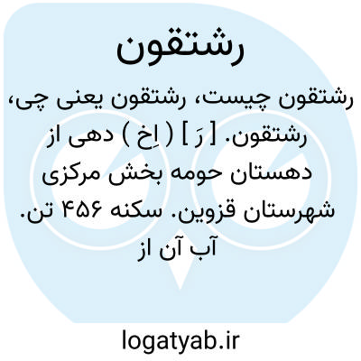 رشتقون. [ رَ ] ( اِخ ) دهی از دهستان حومه بخش مرکزی شهرستان قزوین. سکنه 456 تن. آب آن از رودخانه ارجرود. محصول آنجا غلات و بنشن و انگور و بادام و جالیز. صنایع دستی زنان جوراب بافی. ( از فرهنگ جغرافیایی ایران ج 1 ).