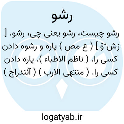 رشو. [ رَش ْوْ ] ( ع مص ) پاره و رشوه دادن کسی را. ( ناظم الاطباء ). پاره دادن کسی را. ( منتهی الارب ) ( آنندراج ) ( از اقرب الموارد ). رشوت دادن. ( تاج المصادر بیهقی ) ( مصادر اللغه زوزنی ).