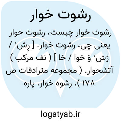 رشوت خوار. [ رِش ْ / رُش ْ وَ خوا / خا ] ( نف مرکب ) آتشخوار. ( مجموعه مترادفات ص 178 ). رشوه خوار. پاره گیر. رشوه خور. ( یادداشت مؤلف ):