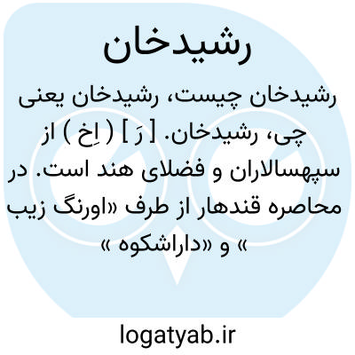 رشیدخان. [ رَ ] ( اِخ ) از سپهسالاران و فضلای هند است. در محاصره قندهار از طرف «اورنگ زیب » و «داراشکوه » پسران شاه جهان ( در سال 1062 هَ. ق. ). شرکت داشت و شرح این محاصره را روزبه روز به رشته تحریر درآورد و کتابی به نام «لطایف الاخبار» تصنیف کرد. رجوع به سبک شناسی ج 3 ذیل ص 297 و 198 شود.