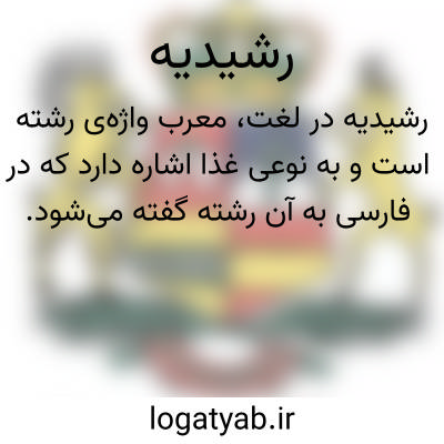رُشیدیه در لغت، معرَّبِ واژه‌ی رشته است و به نوعی غذا اشاره دارد که در فارسی به آن رشته گفته می‌شود. این معنا در منابعی چون ناظم‌الاطباء، منتهی‌الارب، آنندراج و مهذب‌الاسماء ثبت شده و به‌صورت کامل به همان معنای رشته بازمی‌گردد. رُشیدیه نام یکی از قبایل نیز هست که در فرهنگ‌نامه‌ها از آن یاد شده است. این قبیله در منابع تاریخی و لغوی با همین عنوان شناخته می‌شود. رُشیدیه همچنین نام ناحیه‌ای آباد در سلطانیه، پایتخت اولجایتو، است که به دستور خواجه رشیدالدین فضل‌الله‌همدانی ساخته شد. در این ناحیه، مسجد، مدرسه، بیمارستان و سازه‌های خیریه همراه با نزدیک به هزار خانه احداث گردید. این اطلاعات در تاریخ ادبیات ایران اثر ادوارد براون نیز مورد اشاره قرار گرفته است. علاوه بر این، «رُشیدیه» نام فرقه‌ای از خوارج منسوب به فردی به نام رُشید است.