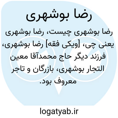 💡 رضا بوشهری (حدود ۱۲۷۰ - دی ۱۳۵۰) بازرگان، سناتور، عضو اتاق بازرگانی تهران و یک دوره نماینده مجلس شورای ملی بود.