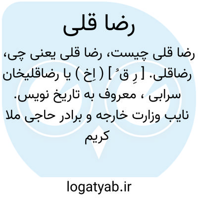 رضاقلی. [ رِ ق ُ ] ( اِخ ) یا رضاقلیخان سرابی، معروف به تاریخ نویس. نایب وزارت خارجه و برادر حاجی ملا کریم مؤلف برهان جامع است. ( دانشمندان آذربایجان ص 159 ).