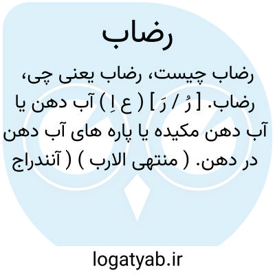 رضاب. [ رُ / رَ ] ( ع اِ ) آب دهن یا آب دهن مکیده یا پاره های آب دهن در دهن. ( منتهی الارب ) ( آنندراج ) ( ناظم الاطباء ). آب دهن مکیده. ( از اقرب الموارد ). آب دهان. ( صراح اللغة ) ( دهار ). بزاق. ( یادداشت مؤلف ): چون اشک به روی عاشقان روان و رخشان و چون شمع بر بالین معشوق ریزان و درخشان، آرزومندتر از شراب وصل نازکان و سودمندتر از رضاب لعل یارگان. ( ترجمه محاسن اصفهان ). || ریزه خشک. || پاره های برف. || پاره های شکر. ( منتهی الارب ) ( آنندراج ) ( ناظم الاطباء ) ( از اقرب الموارد ). || پاره یخچه. ( منتهی الارب ) ( ناظم الاطباء ). تگرگ. ( از اقرب الموارد ) ( از المنجد ). || شهد نیک، یا عام است. ( منتهی الارب ) ( آنندراج ) ( ناظم الاطباء ). لعاب عسل. ( از اقرب الموارد ).