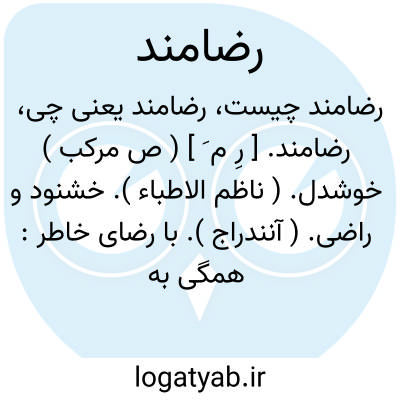 رضامند. [ رِ م َ ] ( ص مرکب ) خوشدل. ( ناظم الاطباء ). خشنود و راضی. ( آنندراج ). با رضای خاطر: همگی به امر رضامند شده. ( مجمل التواریخ گلستانه ). || قبول کننده. || اذن دهنده. ( ناظم الاطباء ).