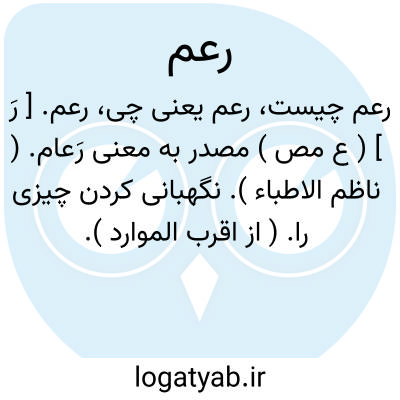 رعم. [ رَ ] ( ع مص ) مصدر به معنی رَعام. ( ناظم الاطباء ). نگهبانی کردن چیزی را. ( از اقرب الموارد ).