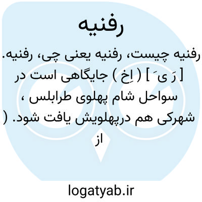 رفنیه. [ رَ ی َ ] ( اِخ ) جایگاهی است در سواحل شام پهلوی طرابلس، شهرکی هم درپهلویش یافت شود. ( از معجم البلدان ج 4 ). رجوع به قاموس الاعلام ترکی ج 3 و تاریخ الحکماء قفطی ص 70 شود.