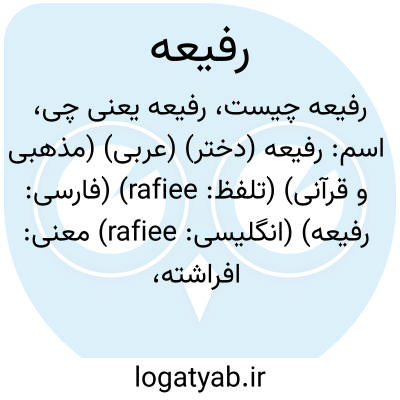 اسم: رفیعه (دختر) (عربی) (مذهبی و قرآنی) (تلفظ: rafiee) (فارسی: رفيعه) (انگلیسی: rafiee)