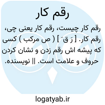 ( ~. ) [ ع - فا. ] (ص فا. ) ۱ - کسی که پیشه اش رقم زدن و نشان کردن حروف و علامت است. ۲ - حکاک. ۳ - محاسب. ۴ - نویسنده، کاتب.