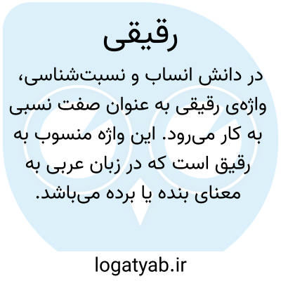 در دانش انساب و نسبتشناسی، واژهی رقیقی به عنوان صفت نسبی به کار میرود. این واژه منسوب به رقیق است که در زبان عربی به معنای بنده یا برده میباشد. بنابراین، نسبت رقیقی به کسی یا خاندانی اشاره دارد که با مفهوم بردگی در پیوند است. بر پایهی منابع معتبر تاریخی و نسبشناسی، همچون کتاب الانساب تألیف سمعانی، این نسبت عمدتاً به پیشهی خرید و فروش بردگان مربوط میشده است. از این رو، فردی که به عنوان رقیقی شناخته میشده، احتمالاً به شغل تجارت برده اشتغال داشته یا در خاندانی زندگی میکرده که این حرفه را دنبال میکردهاند. به این ترتیب، کاربرد این صفت نسبی در متون کهن و تاریخی، عموماً برای شناسایی افراد مرتبط با نظام بردهداری و بازار خرید و فروش خدمتکاران بوده است. این عنوان، جنبهای توصیفی داشته و بیانگر موقعیت اجتماعی یا شغلی فرد در ساختار جامعهی آن دوران محسوب میشده است.