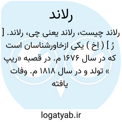 رلاند. [ رُ ] ( اِخ ) یکی ازخاورشناسان است که در سال 1676 م. در قصبه «ریپ » تولد و در سال 1818 م. وفات یافته است. در دارالفنون «هاردرویگ » مدتی به تعلیم فلسفه و پس از آن به تدریس زبانهای شرقی پرداخت. از آثار وی کتابی است در تاریخ سرزمین فلسطین، و به علاوه بعضی از کتب عربی را به زبان لاتین ترجمه کرده است. ( از قاموس الاعلام ترکی ).