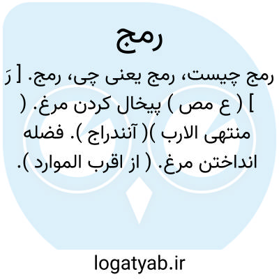 رمج. [ رَ ] ( ع مص ) پیخال کردن مرغ. ( منتهی الارب )( آنندراج ). فضله انداختن مرغ. ( از اقرب الموارد ).