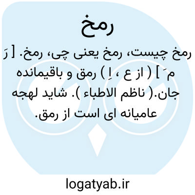 رمخ. [ رَ م َ ] ( از ع، اِ ) رمق و باقیمانده جان.( ناظم الاطباء ). شاید لهجه عامیانه ای است از رمق.