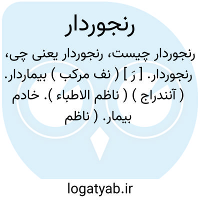 رنجوردار. [ رَ ] ( نف مرکب ) بیماردار. ( آنندراج ) ( ناظم الاطباء ). خادم بیمار. ( ناظم الاطباء ). پرستار مریض: