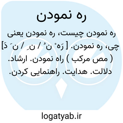 ره نمودن. [ رَه ْ ن ُ / ن ِ / ن َ دَ] ( مص مرکب ) راه نمودن. ارشاد. دلالت. هدایت. راهنمایی کردن. رهنمون بودن. ( یادداشت مؤلف ):