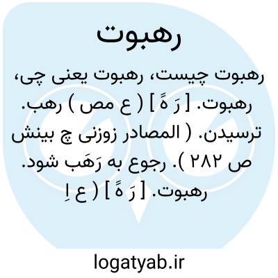 رهبوت. [ رَ هََ ] ( ع مص ) رهب. ترسیدن. ( المصادر زوزنی چ بینش ص 282 ). رجوع به رَهَب شود.