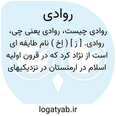 روادی. [ رَ ] ( اِخ ) نام طایفه ای است از نژاد کرد که در قرون اولیه اسلام در ارمنستان در نزدیکیهای دونن سکونت داشتند و بگفته ابن اثیر بهترین تیره کردان بودند. ابن خلکان نام این ایل را با زبر«را» و «واو» می نگارد و پیداست که واو بی تشدید است و از این روی با کلمه «روادی » که نام خاندان وهسودان و مملان و با تشدید «واو» است تفاوت پیدا می نماید. شدادیان از این ایل کردی هستند و از اینجاست که ایشان را روادی نیز خوانده اند و حال آنکه رَوّادیان از نژاد عرب بودند که در زمان ابوجعفر منصور عباسی به آذربایجان آمدند و حکومت تبریز و اطراف آن را یافتند. شاذی بن مروان جد اعلای صلاح الدین ایوبی نیز از شعبه روادی بود. این طایفه از اکراد بمناسبت مقاتله با عیسویان و مدافعه از عالم اسلام شهرتی فراوان دارند. ( ازشهریاران گمنام تألیف احمد کسروی چ 2 ص 270 ) ( از کرد و پیوستگی نژادی و تاریخی او تألیف رشیدیاسمی ).