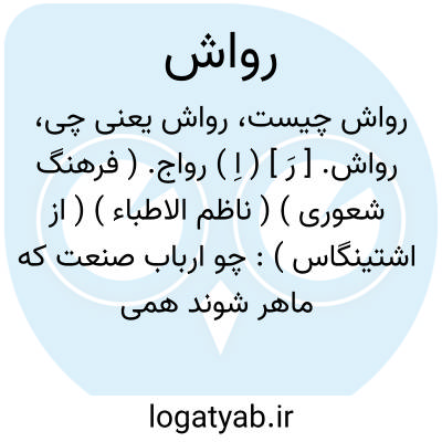رواش. [ رَ ] ( اِ ) رواج. ( فرهنگ شعوری ) ( ناظم الاطباء ) ( از اشتینگاس ):