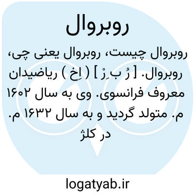 روبروال. [ رُ ب ِرْ ] ( اِخ ) ریاضیدان معروف فرانسوی. وی به سال 1602 م. متولد گردید و به سال 1632 م. در کلژ دو فرانس به استادی علوم ریاضی برگزیده شد و تا وفاتش که به سال 1675 م. اتفاق افتاد در این سمت باقی بود. مهمترین کار وی درباره منحنیات ریاضی است. و نیز ترازویی اختراع کرد که بنام خود وی معروف است. رجوع به دائرةالمعارف بریتانیکا شود.