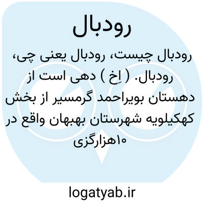 رودبال. ( اِخ ) دهی است از دهستان بویراحمد گرمسیر از بخش کهکیلویه شهرستان بهبهان واقع در 10هزارگزی شمال شرقی راه آرو به بهبهان. منطقه کوهستانی است و هوایی گرم دارد. سکنه ٔآن 193 تن است. شغل اهالی زراعت و گله داری است و قالیچه و جاجیم و جوال بافی از صنایع دستی زنان محسوب میشود. راه مالرو دارد، و سکنه آن از طایفه بویراحمد گرمسیری هستند. ( از فرهنگ جغرافیایی ایران ج 6 ).