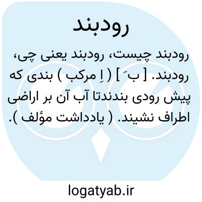 رودبند. [ ب َ ] ( اِ مرکب ) بندی که پیش رودی بندندتا آب آن بر اراضی اطراف نشیند. ( یادداشت مؤلف ).