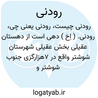 رودنی. ( اِخ ) دهی است از دهستان عقیلی بخش عقیلی شهرستان شوشتر واقع در 7هزارگزی جنوب شوشتر و 12هزارگزی باختری راه شوشتر بمسجد سلیمان.کوهستانی است و هوایی گرم دارد. سکنه آن 150 تن است و آب آن از رودخانه کارون تأمین میشود. محصولش غلات و برنج، و شغل اهالی زراعت است. سکنه آن از طایفه بختیاری هستند. ( از فرهنگ جغرافیایی ایران ج 6 ).