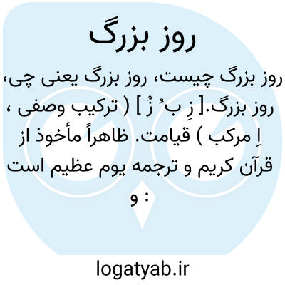 روز بزرگ.[ زِ ب ُ زُ ] ( ترکیب وصفی، اِ مرکب ) قیامت. ظاهراً مأخوذ از قرآن کریم و ترجمه یوم عظیم است: و بیاموزانید ایمان آوردن بوی و به پیغامبران و بفریشتگان و بکتبها و بروز بزرگ. ( هدایةالمتعلمین ).