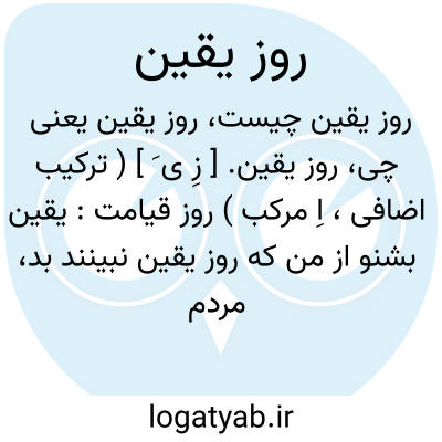روز یقین. [ زِ ی َ ] ( ترکیب اضافی، اِ مرکب ) روز قیامت: