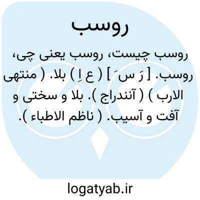 روسب. [ رَ س َ ] ( ع اِ ) بلا. ( منتهی الارب ) ( آنندراج ). بلا و سختی و آفت و آسیب. ( ناظم الاطباء ). داهیه. ( اقرب الموارد ).
