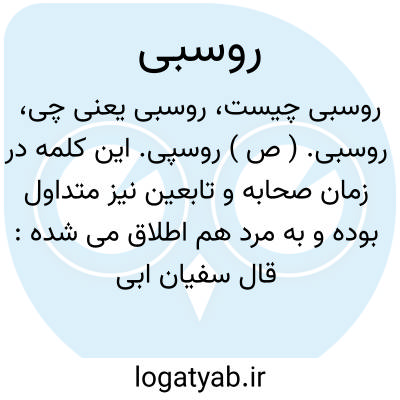 روسبی. ( ص ) روسپی. این کلمه در زمان صحابه و تابعین نیز متداول بوده و به مرد هم اطلاق می شده: قال سفیان ابی عثیمه و اسمه سلمةبن مجنون قال کان بینی و بین رجل منازعة فقلت له یا روسبی. ( الکنی و الاسماء از یادداشت بخط مؤلف ). و رجوع به روسپی شود.