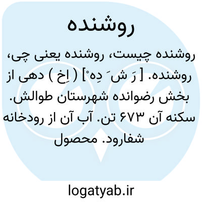 روشنده. [ رَ ش َ دِه ْ] ( اِخ ) دهی از بخش رضوانده شهرستان طوالش. سکنه آن 673 تن. آب آن از رودخانه شفارود. محصول عمده آنجا برنج و لبنیات. ( از فرهنگ جغرافیایی ایران ج 2 ).