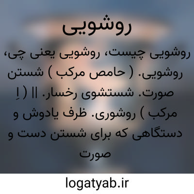 روشویی. ( حامص مرکب ) شستن صورت. شستشوی رخسار. || ( اِ مرکب ) روشوری. ظرف یادوش و دستگاهی که برای شستن دست و صورت نصب کنند.
