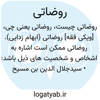 [ویکی فقه] روضاتی (ابهام زدایی). روضاتی ممکن است اشاره به اشخاص و شخصیت های ذیل باشد: • سیدجلال الدین بن مسیح چهارسوقی روضاتی اصفهانی، عالم فاضل و نوه صاحب روضات• سیدحبیب اللّه بن هدایت اللّه روضاتی موسوی چهارسوقی اصفهانی، عالم فاضل و واعظ کامل، در اصفهان• سیدمحمدباقر روضاتی اصفهانی، از علماء و فضلاء اصفهان• سیداحمد بن محمدباقر روضاتی چهارسوقی اصفهانی، از علما و فقهای معاصر اصفهان و تعلیم یافته مکتب قم• سیداسداللّه بن هدایت اللّه روضاتی چهارسوقی اصفهانی، از علما و فضلای اصفهان