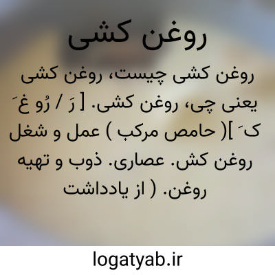 روغن کشی. [ رَ / رُو غ َ ک َ ]( حامص مرکب ) عمل و شغل روغن کش. عصاری. ذوب و تهیه روغن. ( از یادداشت مؤلف ). || ( اِ مرکب ) کارخانه روغن کشی. آنجا که روغن به دست می آورند. ( از یادداشت مؤلف ). کارگاه عصاری. روغن خانه. روغنکده.