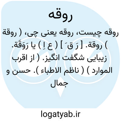 ( روقة ) روقة. [ رَ ق َ ] ( ع اِ ) یا رَوَقَة. زیبایی شگفت انگیز. ( از اقرب الموارد ) ( ناظم الاطباء ). حسن و جمال خوب. ( منتهی الارب ) ( آنندراج ).