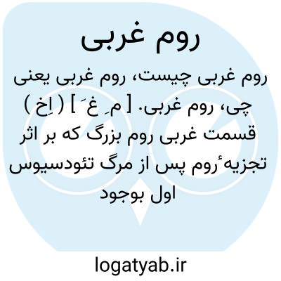 روم غربی. [ م ِ غ َ ] ( اِخ ) قسمت غربی روم بزرگ که بر اثر تجزیه ٔروم پس از مرگ تئودسیوس اول بوجود آمد ( 395 م. ). روم غربی در 476 م. به دست ژرمنها بکلی منقرض شد. پایتخت روم غربی شهر رم پایتخت کنونی ایتالیا بوده است. ( فرهنگ فارسی معین ). و رجوع به روم و ایتالیا شود.