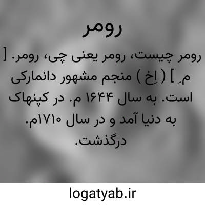 رومر. [ م ِ ] ( اِخ ) منجم مشهور دانمارکی است. به سال 1644 م. در کپنهاک به دنیا آمد و در سال 1710م. درگذشت. وی دوربینی برای کشف سرعت نور و تعیین محل اجرام آسمانی اختراع کرد. ( از قاموس الاعلام ترکی ج 3 ).