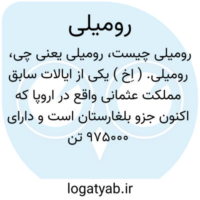رومیلی. ( اِخ ) یکی از ایالات سابق مملکت عثمانی واقع در اروپا که اکنون جزو بلغارستان است و دارای 975000 تن جمعیت و شهر حاکم نشین آن فیلیپوپولی که فلبه نیز گویند. ( ناظم الاطباء ). روم ایلی. و رجوع به روم ایلی و تاریخ ادبی ایران تألیف ادوارد براون ج 3 ص 454 شود.