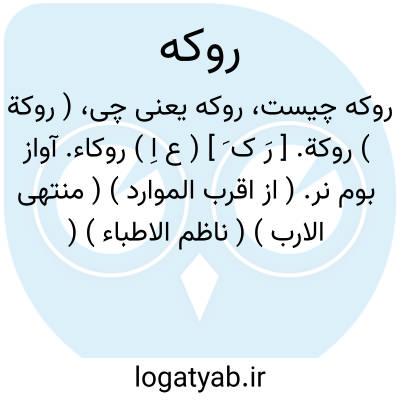 ( روکة ) روکة. [ رَ ک َ ] ( ع اِ ) روکاء. آواز بوم نر. ( از اقرب الموارد ) ( منتهی الارب ) ( ناظم الاطباء ) ( آنندراج ). و رجوع به روکاء شود. || موج، لغت بغدادی است. ( از اقرب الموارد ) ( از منتهی الارب ) ( از ناظم الاطباء ) ( از آنندراج ).