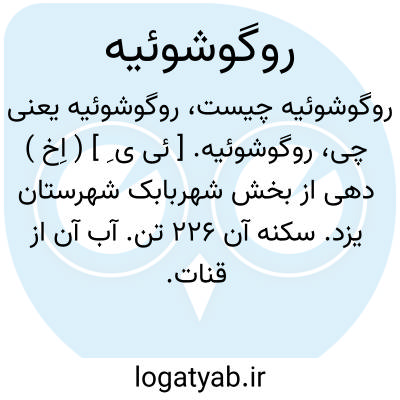 روگوشوئیه. [ ئی ی ِ ] ( اِخ ) دهی از بخش شهربابک شهرستان یزد. سکنه آن 226 تن. آب آن از قنات. محصول عمده آنجا غلات. صنایع دستی زنان کرباس و قالی بافی. ( از فرهنگ جغرافیایی ایران ج 10 ).