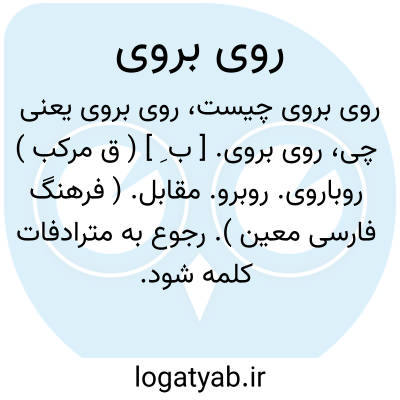 روی بروی. [ ب ِ ] ( ق مرکب ) روباروی. روبرو. مقابل. ( فرهنگ فارسی معین ). رجوع به مترادفات کلمه شود.