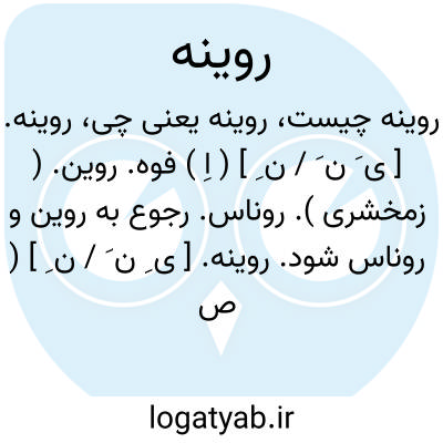 روینه. [ ی ِ ن َ / ن ِ ] ( ص نسبی، اِ ) رویینه. هر چیز که از روی ساخته شده و یا از روی اندود شده باشد. ( ناظم الاطباء ). رجوع به رویینه شود. || حلبی ساز. دیگ ساز. کسی که دیگ سفید کند. || رنگ سرخ. ( ناظم الاطباء ).، روی نه. [ ن ِه ْ ] ( اِ مرکب ) روینه. نقابی که بر روی اندازند. ( ناظم الاطباء ). رجوع به رویوانه شود.
