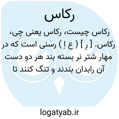 رکاس. [ رِ ] ( ع اِ ) رسنی است که در مهار شتر نر بسته بند هر دو دست آن رابدان بندند و تنگ کنند تا سر او معلق ماند. ( از اقرب الموارد ) ( منتهی الارب ) ( آنندراج ) ( ناظم الاطباء ).