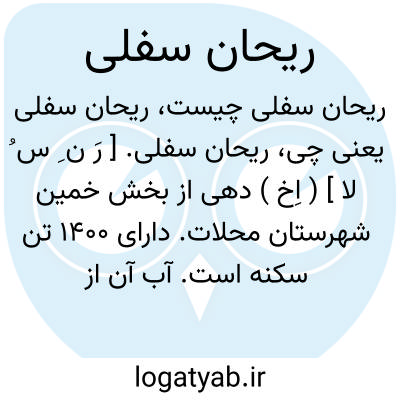 ریحان سفلی. [ رَ ن ِ س ُ لا ] ( اِخ ) دهی از بخش خمین شهرستان محلات. دارای 1400 تن سکنه است. آب آن از رود آشناخور و محصول عمده آنجا غلات و بنشن و چغندرقند و بادام است و راه آن ماشین رو و صنایع دستی زنان قالیبافی است. ( از فرهنگ جغرافیایی ایران ج 1 ).