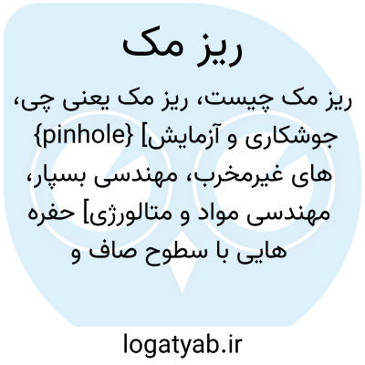 {pinhole} [جوشکاری و آزمایش های غیرمخرب، مهندسی بسپار، مهندسی مواد و متالورژی] حفره هایی با سطوح صاف و تقریباً کروی که اغلب برخلاف مُک ها با سطح قطعه تماس ندارند و چنانچه بزرگ باشند به صورت منفرد و چنانچه کوچک باشند به صورت گروهی، با اندازه های متفاوت، در قطعه...