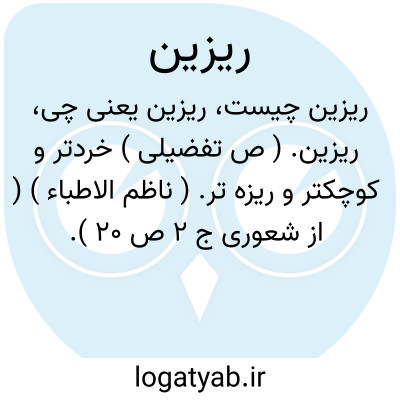 ریزین. ( ص تفضیلی ) خردتر و کوچکتر و ریزه تر. ( ناظم الاطباء ) ( از شعوری ج 2 ص 20 ).