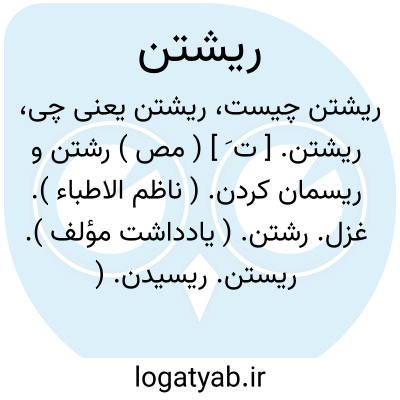 ریشتن. [ ت َ ] ( مص ) رشتن و ریسمان کردن. ( ناظم الاطباء ). غزل. رشتن. ( یادداشت مؤلف ). ریستن. ریسیدن. ( آنندراج ). رجوع به مترادفات کلمه شود. || کوشش کردن. || آهسته سخن گفتن. || معاف کردن. عفو نمودن. آزاد کردن. رهانیدن. ( ناظم الاطباء ).