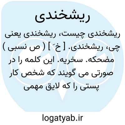 ریشخندی. [ خ َ ] ( ص نسبی ) مضحکه. سخریه. این کلمه را در صورتی می گویند که شخص کار پستی را که لایق مهمی نباشد مرتکب گردد. ( ناظم الاطباء ). || سخره. ( شرفنامه منیری ). که تملق که بدو کنند برای هر امری آماده شود. که با تملق فریب خورد.که او را آسان ریشخند توان کرد. ( یادداشت مؤلف ).