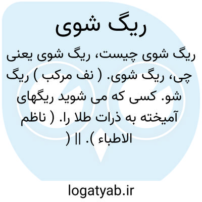 - ریگ شو، ریگ شوی کردن؛ شستن ریگ زرگری. ( آنندراج ). شستن دانه ها و حبوب را در ظرف پرآب تا ریگ و مواد دیگر مخلوط بدان ته نشین شود. ( یادداشت مؤلف ):