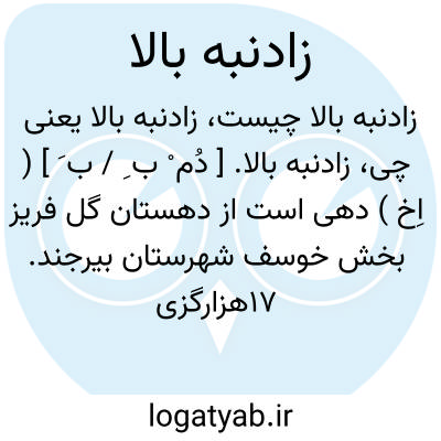 زادنبه بالا. [ دُم ْ ب ِ / ب َ ] ( اِخ ) دهی است از دهستان گل فریز بخش خوسف شهرستان بیرجند. 17هزارگزی خاور خوسف و 13هزارگزی شمال خاوری گل فریزه. ( فرهنگ جغرافیائی ایران ج 9 ).